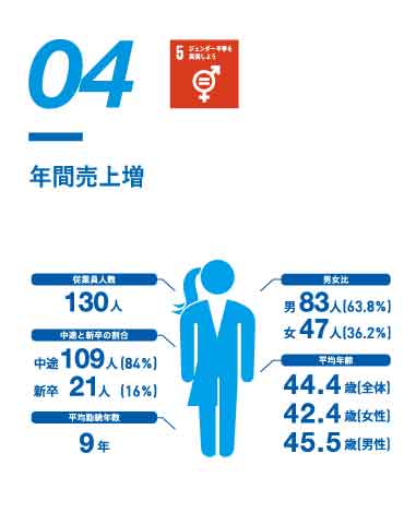 育児世代の女性が、自分らしい働き方を実現できるよう、 短時間正社員制度や希望時間帯で働けるパートタイム制を導入しています。 また、若手人材の採用にも力を入れており、高卒・大卒の 新卒者に加え、若年層の中途入社も積極的に受け入れています。 ※2025年8月1日現在 ※役員、正社員、嘱託社員、パート社員(派遣と契約社員を除く)
