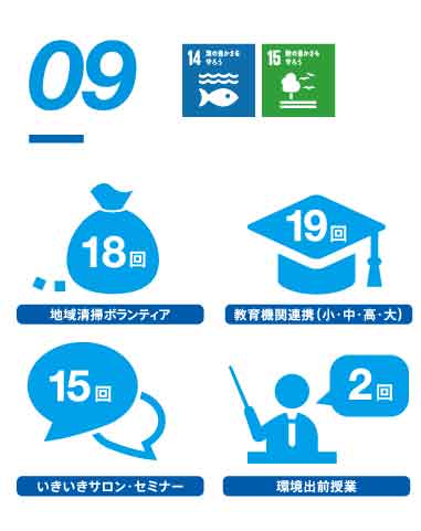 地域社会とのつながりを大切にし、地域清掃や教育機関等との連携を通じて継続的に環境保全や地域社会への貢献に取り組んでいます。特に教育機関(小学校・中学校・高等学校・大学)との連携では、環境学習やキャリア教育など、多岐にわたるサポートを行いました。 また、2013年から続けている「いきいきサロン」への訪問も継続的に実施し、地域の皆様との交流を深めています。今後も地域社会の一員として、多様な取り組みを通じて、地域に根差した活動を続けてまいります。