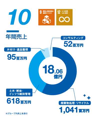 2024年度の売上高は前年比12.6%増の18.06億円となりました。廃棄物処理や土木・解体・インフラ維持管理部門の需要の高まりと共に売上が拡大しました。 2025年度は「選択と集中」というスローガンのもと、3~5年の中期事業計画の策定を行いながらさらなる事業の成長(地域やお客様のお困りごと解決)に取り組んで参ります。