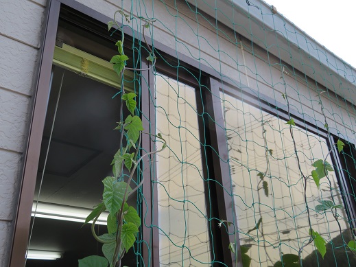 成長が一番早いアサガオ。ついに窓のてっぺんまで成長しました!