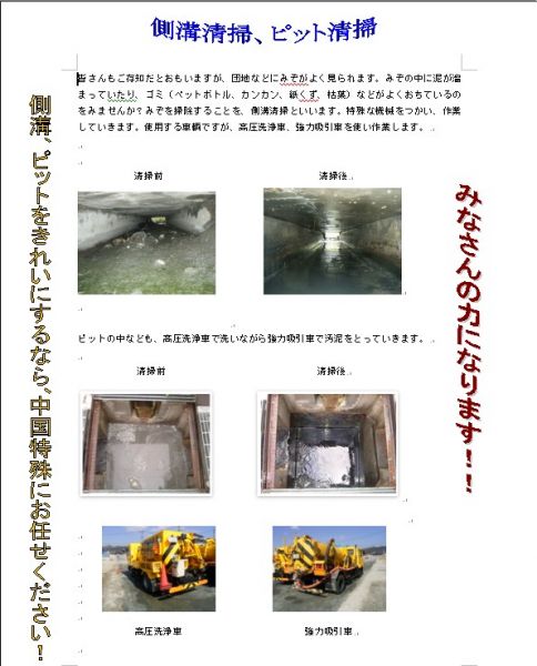 みぞ・ピットをきれいにするなら…!中国特殊へどうぞ!