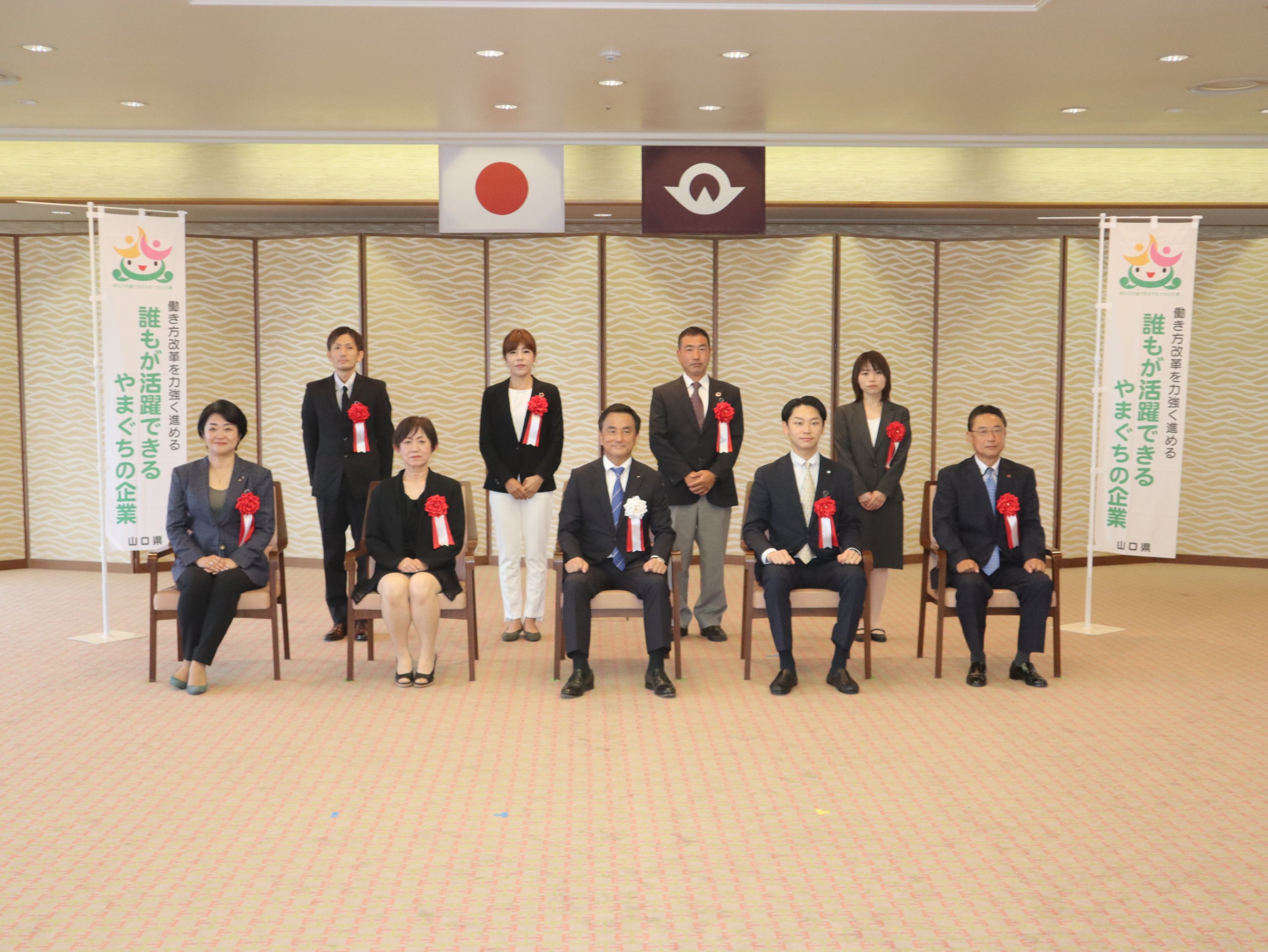 「やまぐち働き方改革推進優良企業表彰」とは働き方改革に積極的に取り組む「誰もが活躍できるやまぐちの企業」のうち、特に優れた取組を行い、他の模範と認められる企業を表彰するものです。
