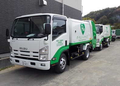 今週より新しいデザインになった ㈱吉本興業のごみ収集車が走り始めました。
