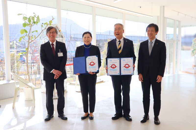 2026年1月14日(水)、株式会社中特ホールディングス本社 COILにて「やまぐち再エネ電力利用事務所」認定証交付式が行われました。山口県環境生活部長 山本毅様より、株式会社中特ホールディングス代表 橋本代表取締役、株式会社リライフ代表 吉谷専務取締役が認定証を受け取りました。