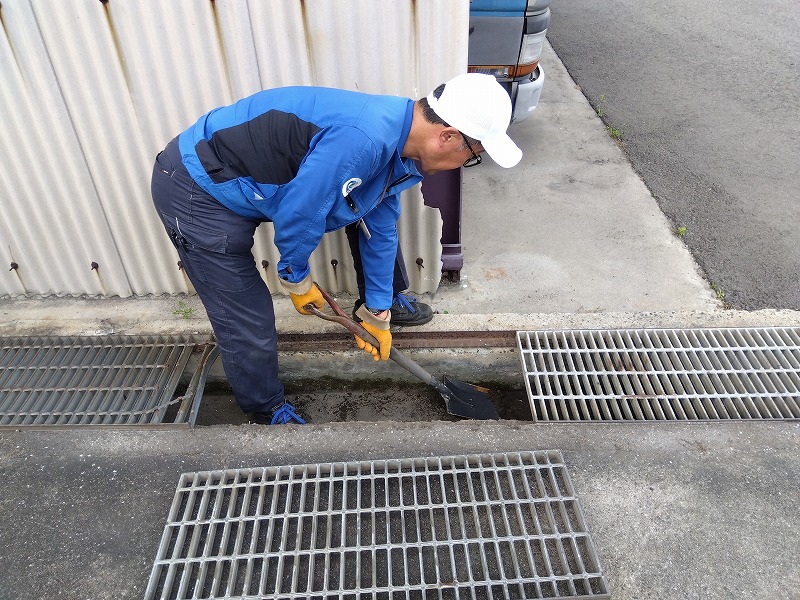 排水の不安を一掃!民宅側溝排水管の清掃を実施