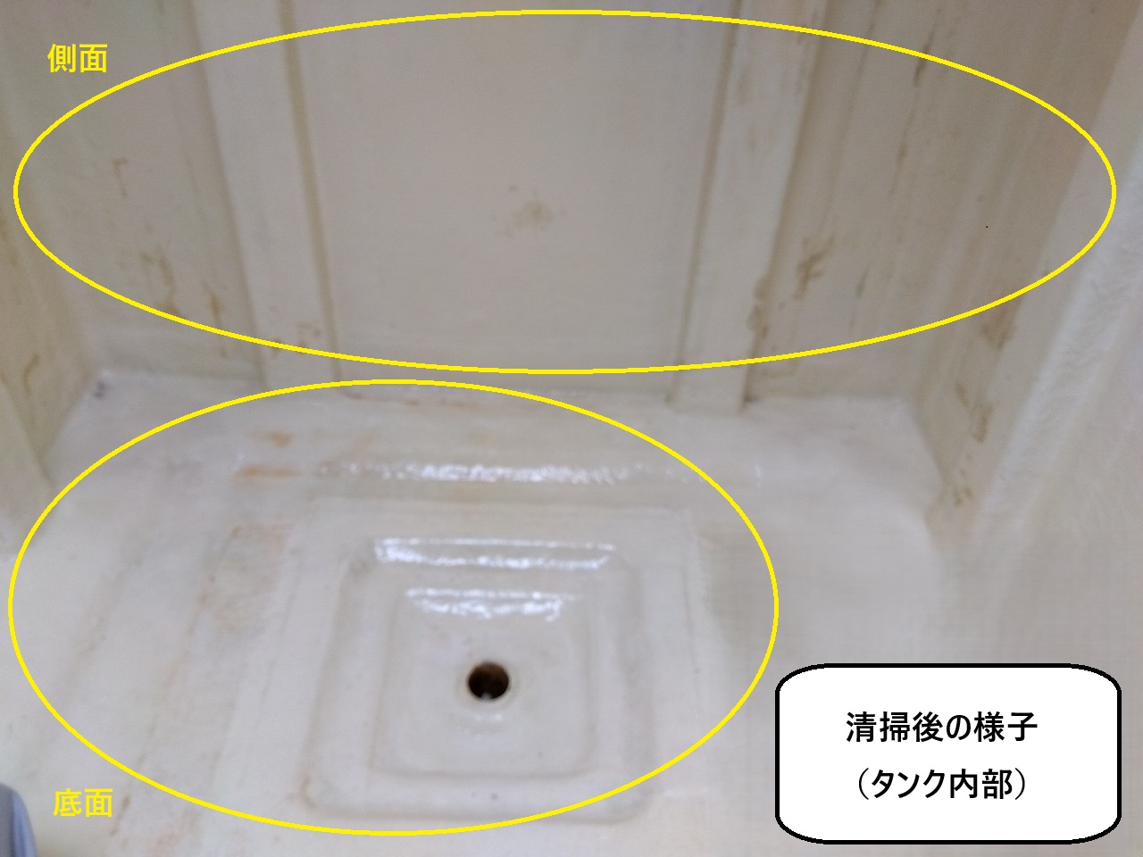 施工前後の変化は一目瞭然で、タンクの外観・内部ともに清潔さが回復。